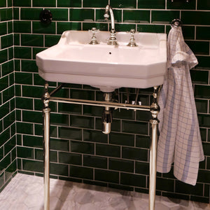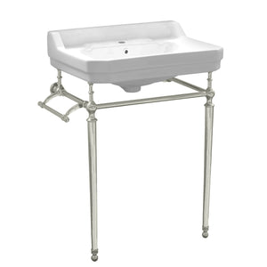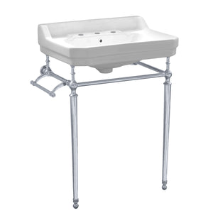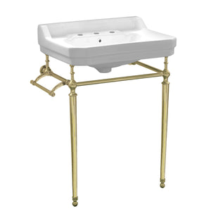 Featuring an English-style console adorned with brass leg supports, the focal point of these designs lies in the integration of a sleek rectangular bowl seamlessly into the console.