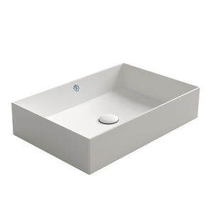 This rectangular above mount basin with center drain, will complement your ideal design perfectly. Available in white only this sink does not have an overflow.