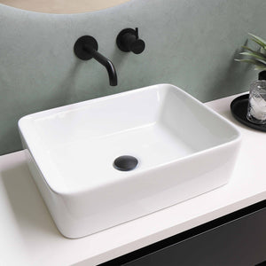 This rectangular above mount basin with center drain, will complement your ideal design perfectly. Available in white only this sink does not have an overflow.