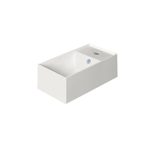 This rectangular wall mount basin with center drain and single faucet hole on the right, will complement your ideal design perfectly. Available in white only this sink does not have an overflow.