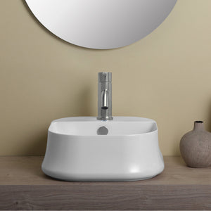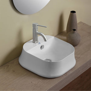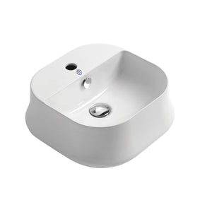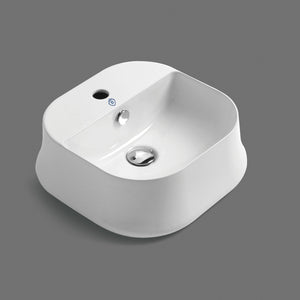 This square above mount basin with single hole drill and rear center drain, will complement your ideal design perfectly. Available in white only this sink has an overflow.