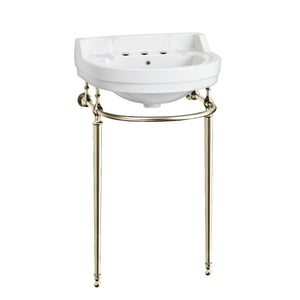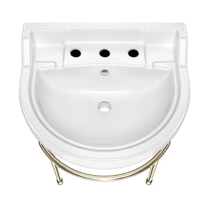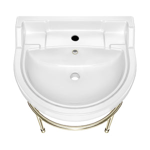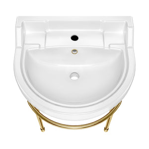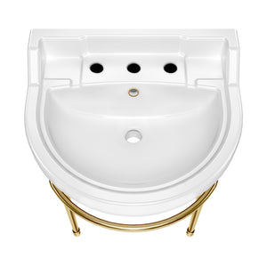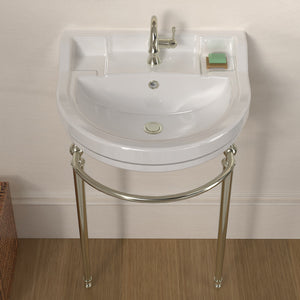 22" Console Sink With Semi-Circular Bowl, Solid Brass Leg Supports and Front Towel Bar