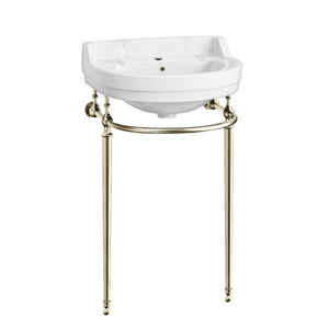 The refined semi-circular basin, paired with solid brass leg supports, creates a striking focal point in any bathroom.