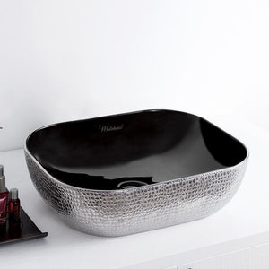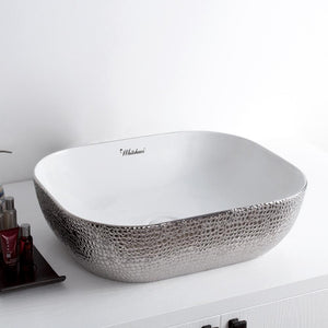 Whitehaus Collection exceeds expectations with the exquisite additions offered in our Isabella Plus Collection. Combining both beauty and durability, these above mount sinks are crafted from the highest quality vitreous china available. The fine craftsmanship shines through with its luxurious, unique and bold seamless design. This rectangular above mount sink features an embossed, gold tone exterior and smooth solid white interior, has a center drain and no overflow. Let Whitehaus Collection help redefine your home with a new level of sophistication by enhancing your bathroom décor with this elegant Isabella Plus above mount basin.