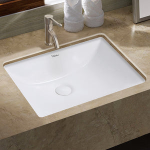 A 21-inch rectangular undermount sink featured with an overflow and rear center drain. Let Whitehaus Collection help redefine your home with a new level of sophistication by enhancing your bathroom décor with this elegant Isabella Plus undermount basin.