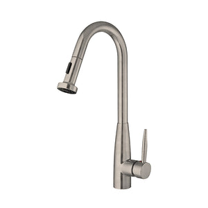 Whitehaus Collection's Jem faucets offer clean innovative designs that add sophistication to any kitchen. Made with a beautiful contemporary design in mind this single hole faucet with a gooseneck swivel spout, pull-down spray head, and lever handlefits beautifully in any kitchen.