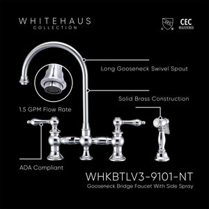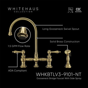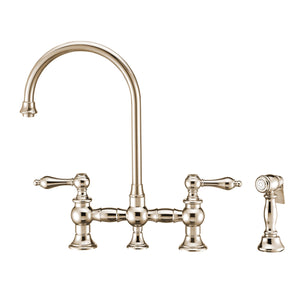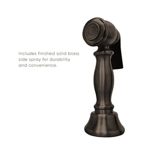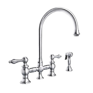 Designed to complement any home, these kitchen faucets are made of solid brass that ensures durability and strength. They feature a long gooseneck swivel spout, solid lever handles, durable solid brass side spray, and added bonus of Watersense compliance with 1.5 GPM water flow.