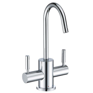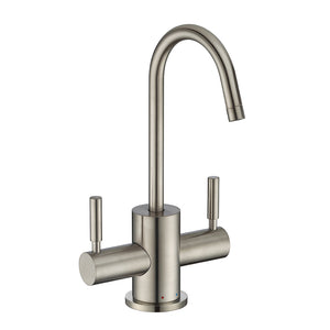 This Instant Hot/Cold Water Faucet with Contemporary Spout, Spring-Loaded Self Closing Hot Water Handle is constructed out of low lead compliant solid brass.