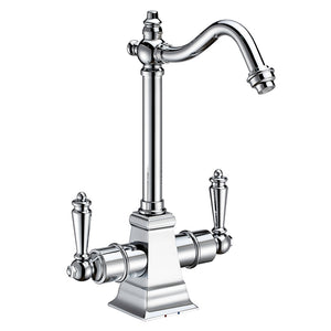 This Instant Hot/Cold Water Faucet with Traditional Spout, Spring-Loaded Self Closing Hot Water Handle is constructed out of low lead compliant solid brass.