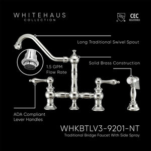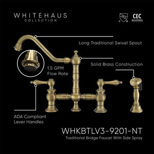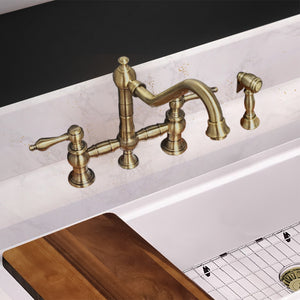 Vintage III Plus offers the finest craftsmanship and style that leaves a lasting impression in your kitchen. Designed to complement any home, Vintage III Plus kitchen faucets are made of solid brass that ensures durability and strength. Its features include long traditional swivel spout, solid lever handles, durable solid brass side spray, and added bonus of Watersense compliance with 1.5 GPM water flow.