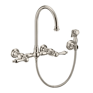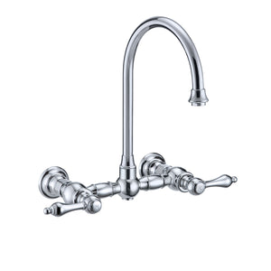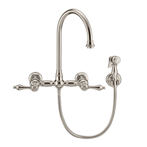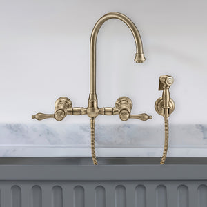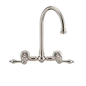 Designed to complement any home, Vintage III Plus kitchen faucets are made of solid brass that ensures durability and strength. This wall mount faucet features a long gooseneck swivel spout and solid lever handles.