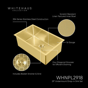 This versatile sink can be installed as an undermount or drop-in, featuring a 3-1/2” rear center drain location and comes complete with a matching stainless steel basket strainer and sink grid.