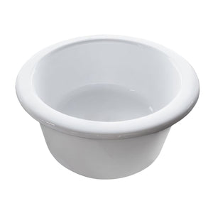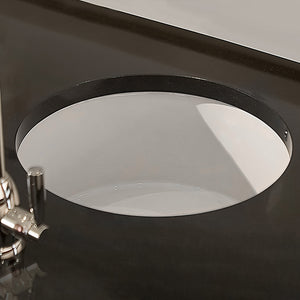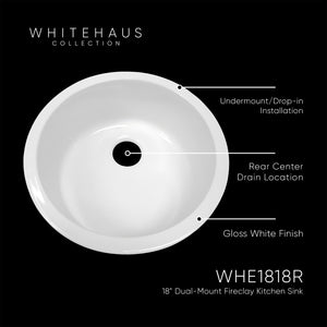 18" round undermount/drop-in fireclay kitchen sink with rear center drain location.