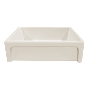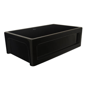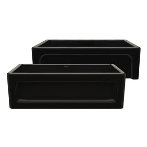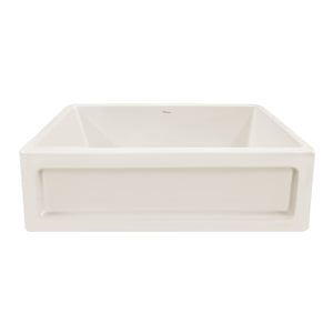 33” reversible single bowl fireclay kitchen sink with a shaker-style center panel design on one side, and an elegant beveled front apron on the other:
