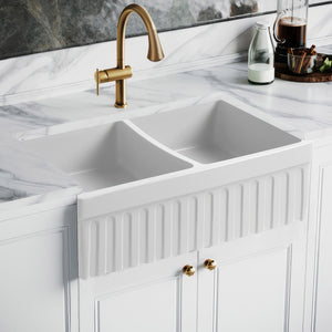 Crafted with premium fireclay, this unique double bowl sink combines durability with timeless elegance, making it the perfect addition to any culinary space.