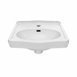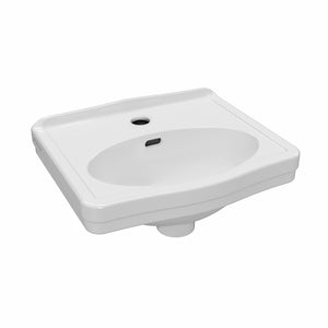 Add a classic touch to your bathroom with this Rectangular Wall Mount Basin, featuring an integrated oval bowl, a distinctive curved front lip, and a built-in low-rise backsplash for added protection.