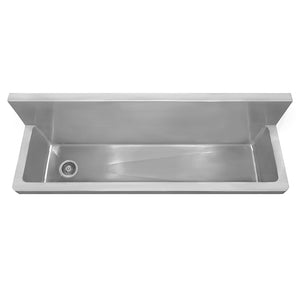 44" Noah's Collection brushed stainless steel single bowl wall mount commercial utility sink with 2 1/2" offset center drain opening. Great in garages, laundry rooms or commercial areas.