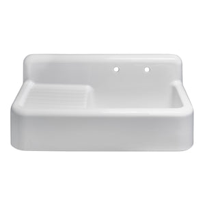 With its integral drainboard and high backsplash, this fireclay sink provides added convenience and style, making it a practical and stylish choice for any kitchen or utility space.