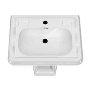 Featuring the option for single or widespread faucet drilling, this traditional pedestal sink offers both beauty and versatility.