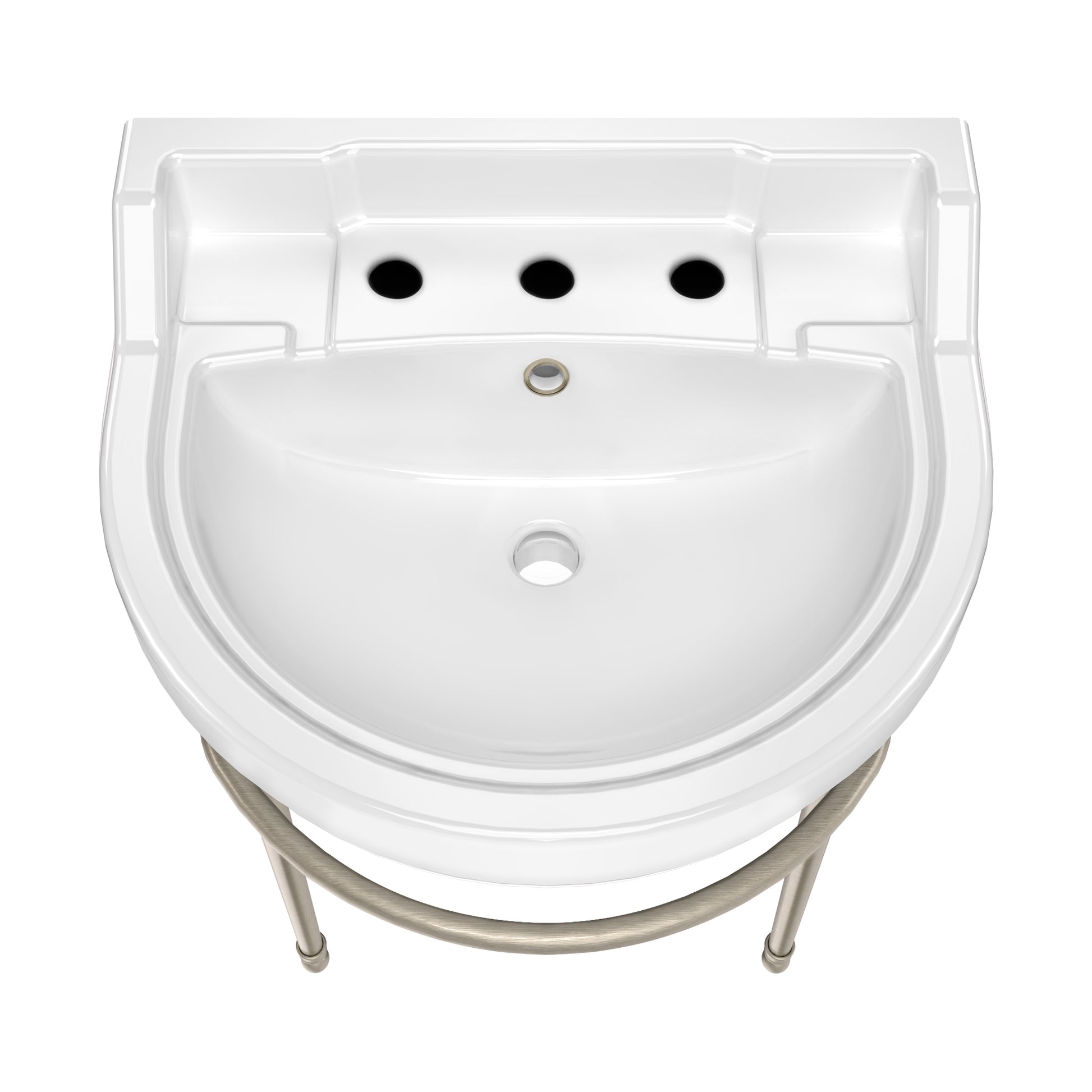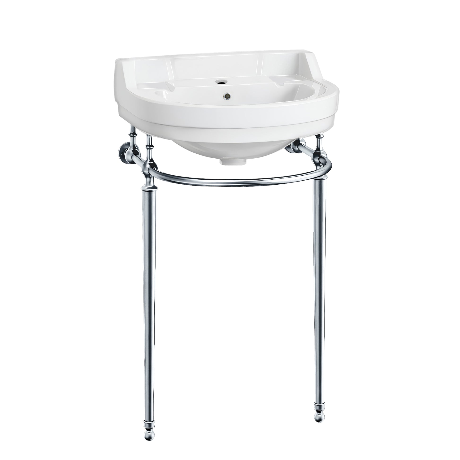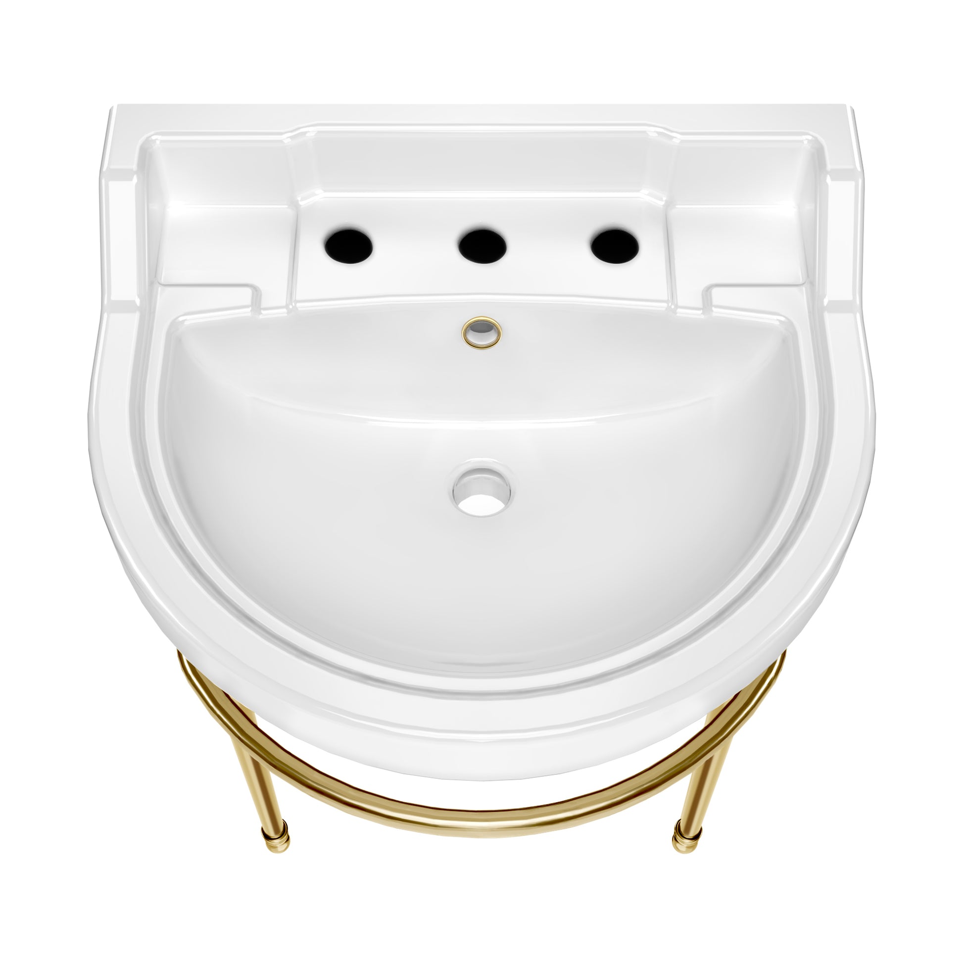 The refined semi-circular basin, paired with solid brass leg supports, creates a striking focal point in any bathroom.