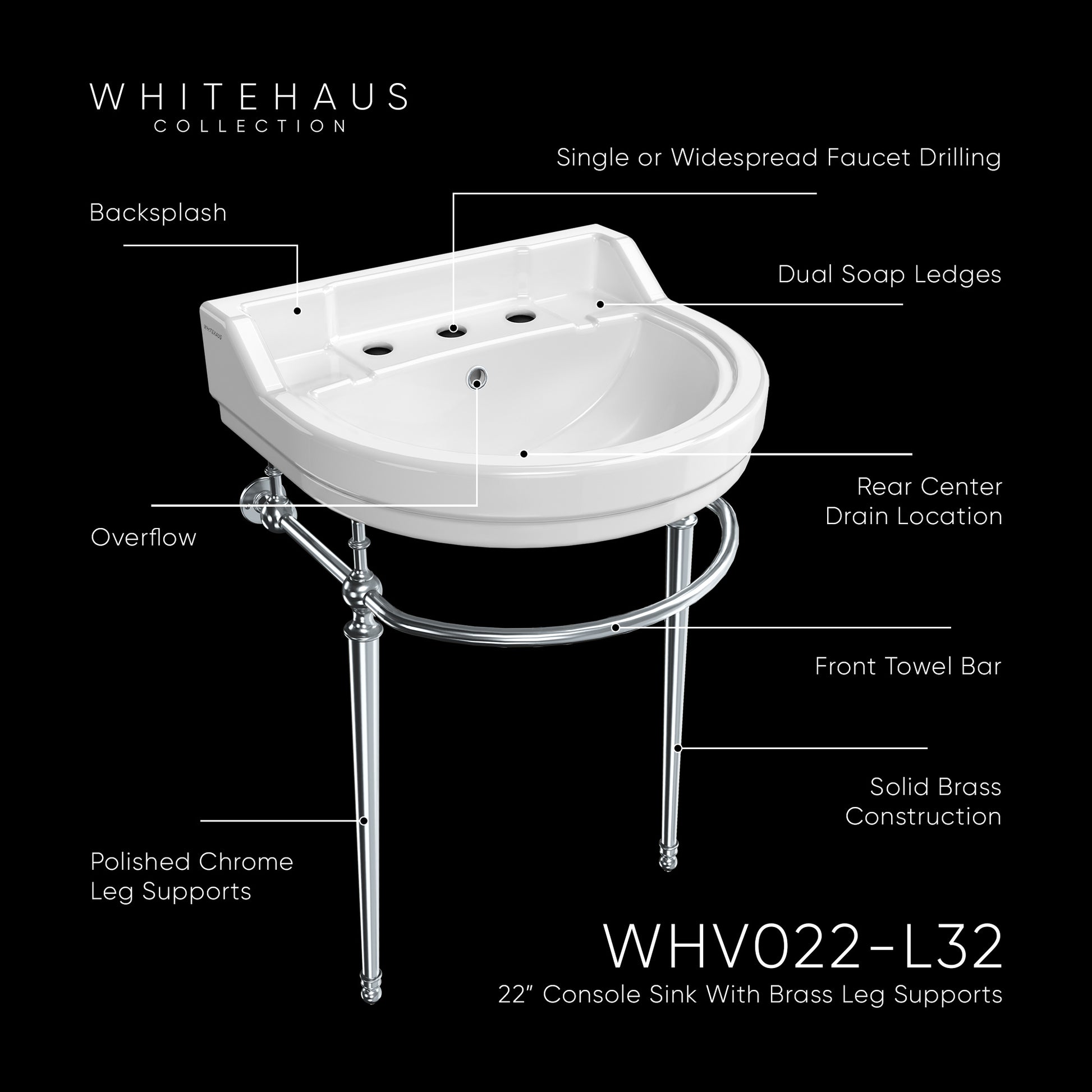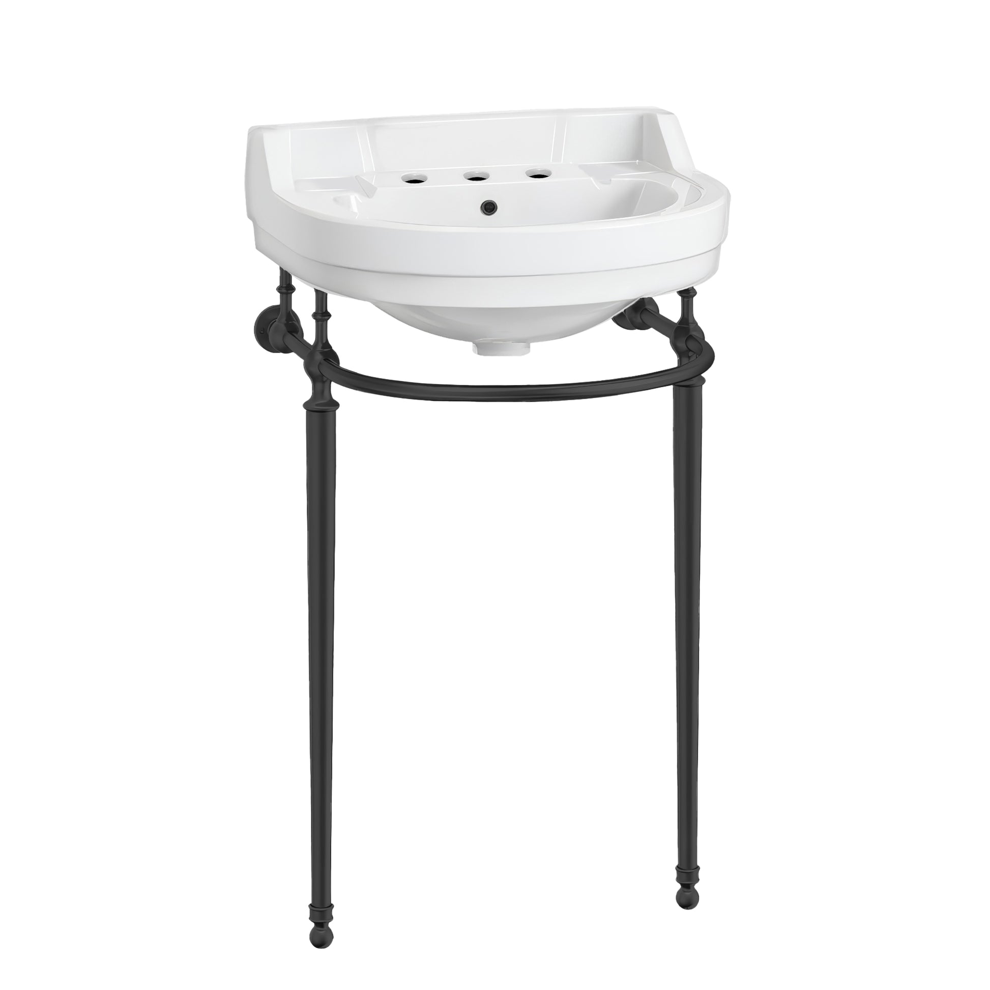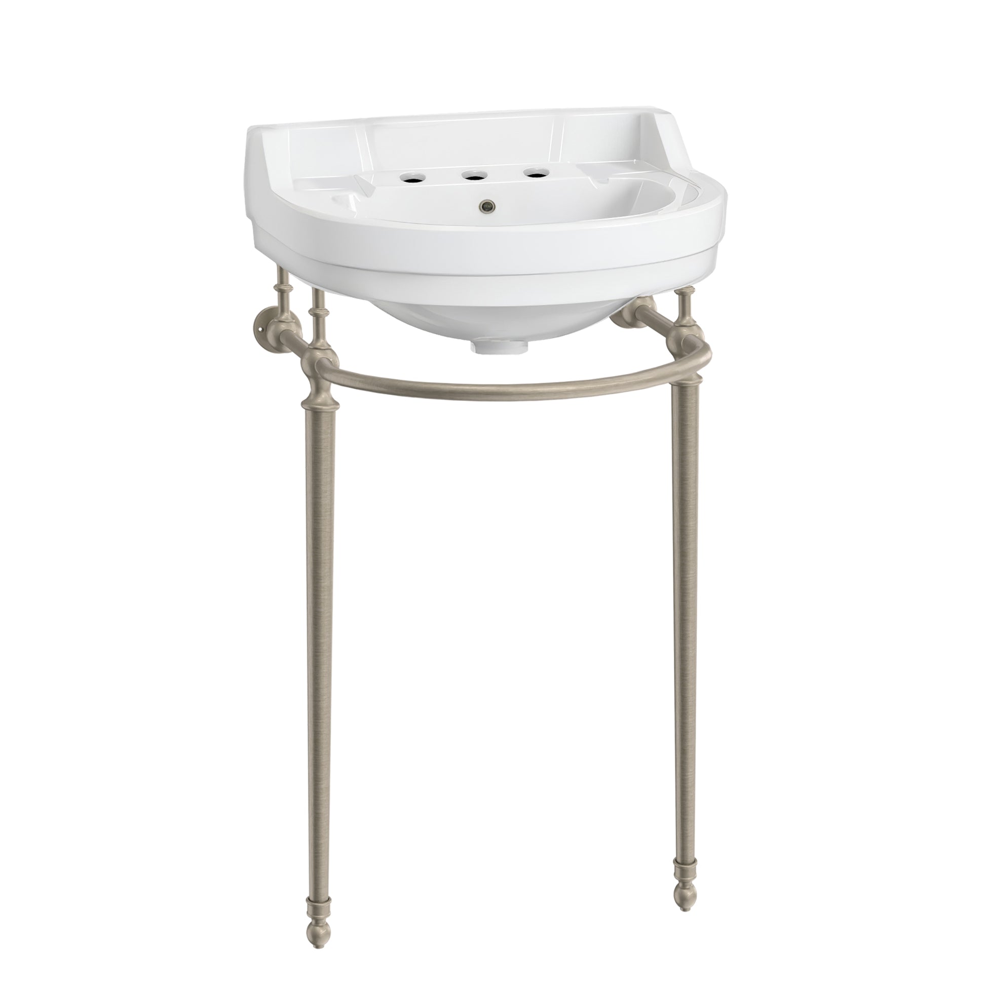 22" Console Sink With Semi-Circular Bowl, Solid Brass Leg Supports and Front Towel Bar