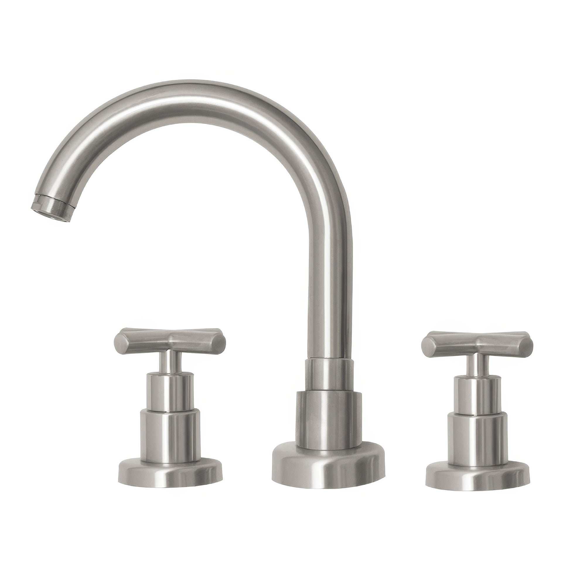 Luxe Widespread Lavatory Faucet with Tubular Swivel Spout, Cross Handles and Pop-up Waste
