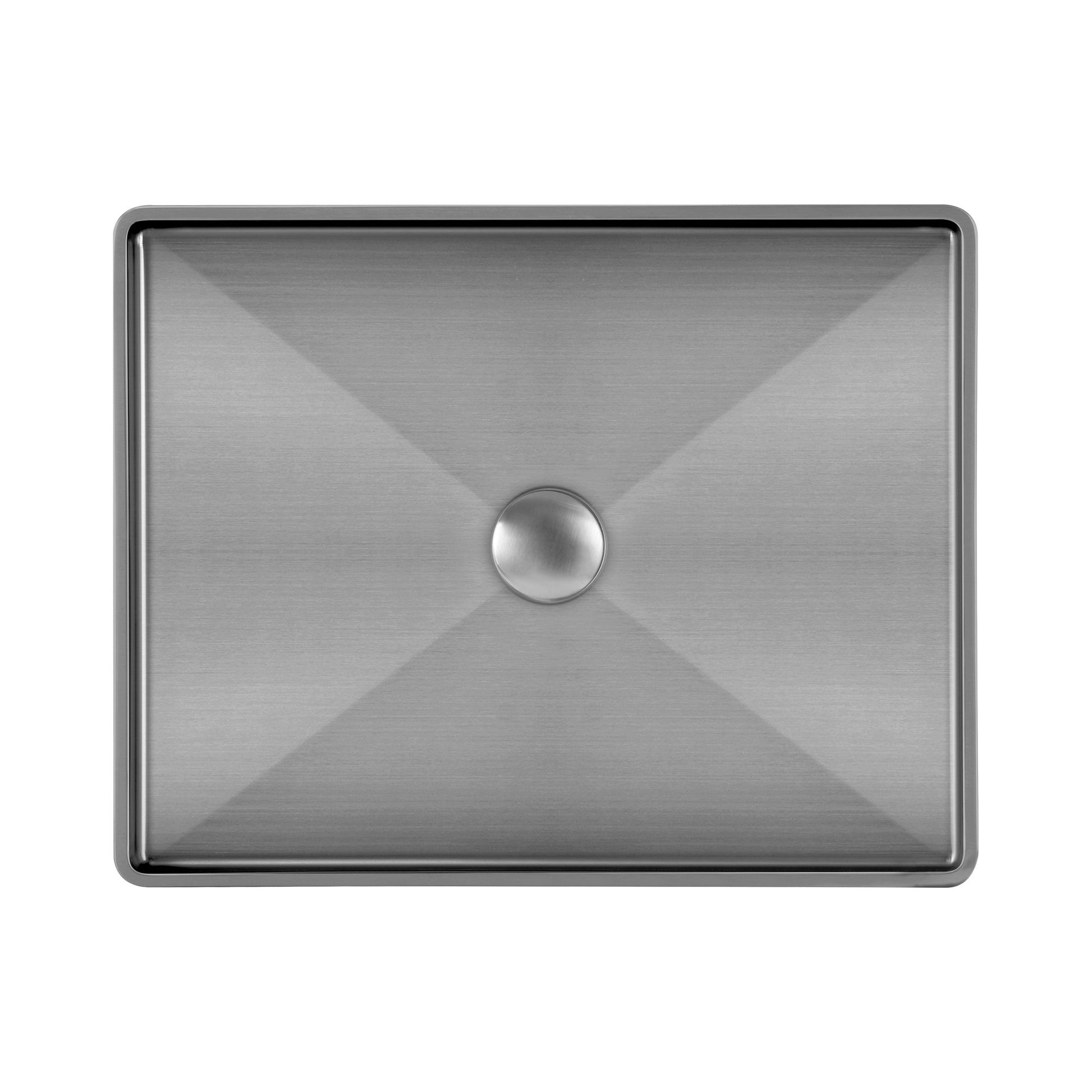 Whitehaus Collection 10 gauge frame, 18 gauge heavy-duty industrial grade 304 series stainless steel rectangular above mount basin with matching drain, 10 gauge frame, noise reduction dampening pads and full undercoating for sound proofing and protection against condensation.