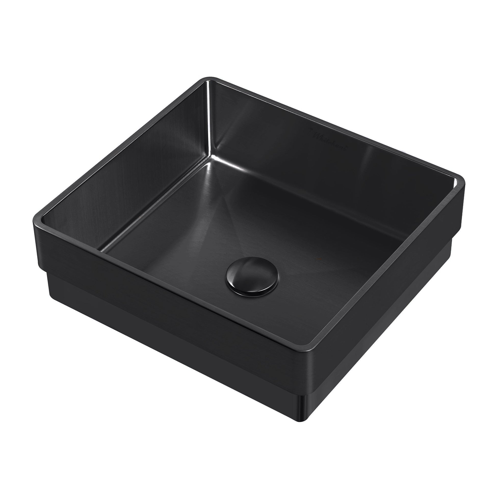 Whitehaus Collection 10 gauge frame, 18 gauge heavy-duty industrial grade 304 series stainless steel squared semi-recessed basin with matching drain, 10 gauge frame, noise reduction dampening pads and full undercoating for sound proofing and protection against condensation.