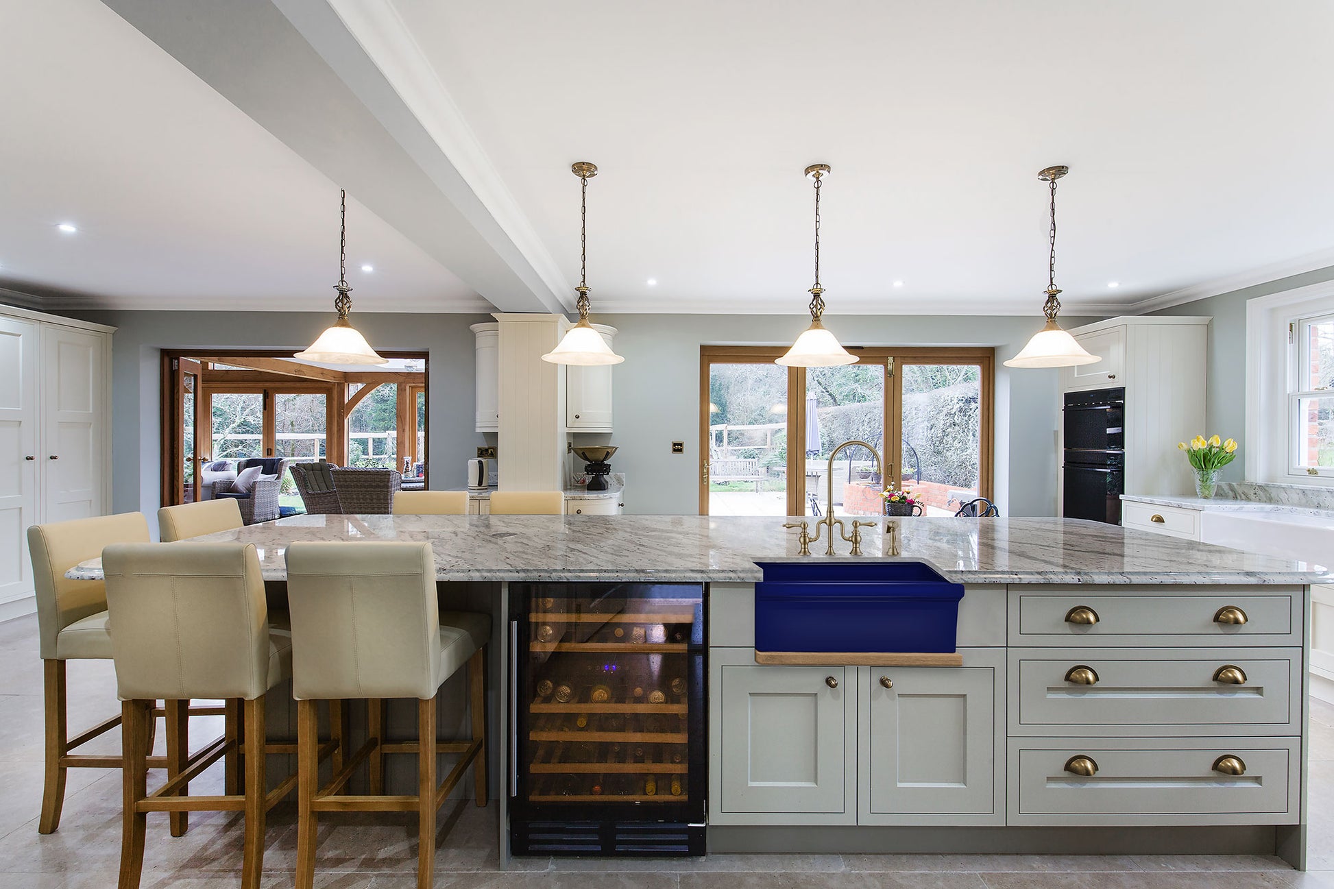 - Sinks are finished on all four sides.
