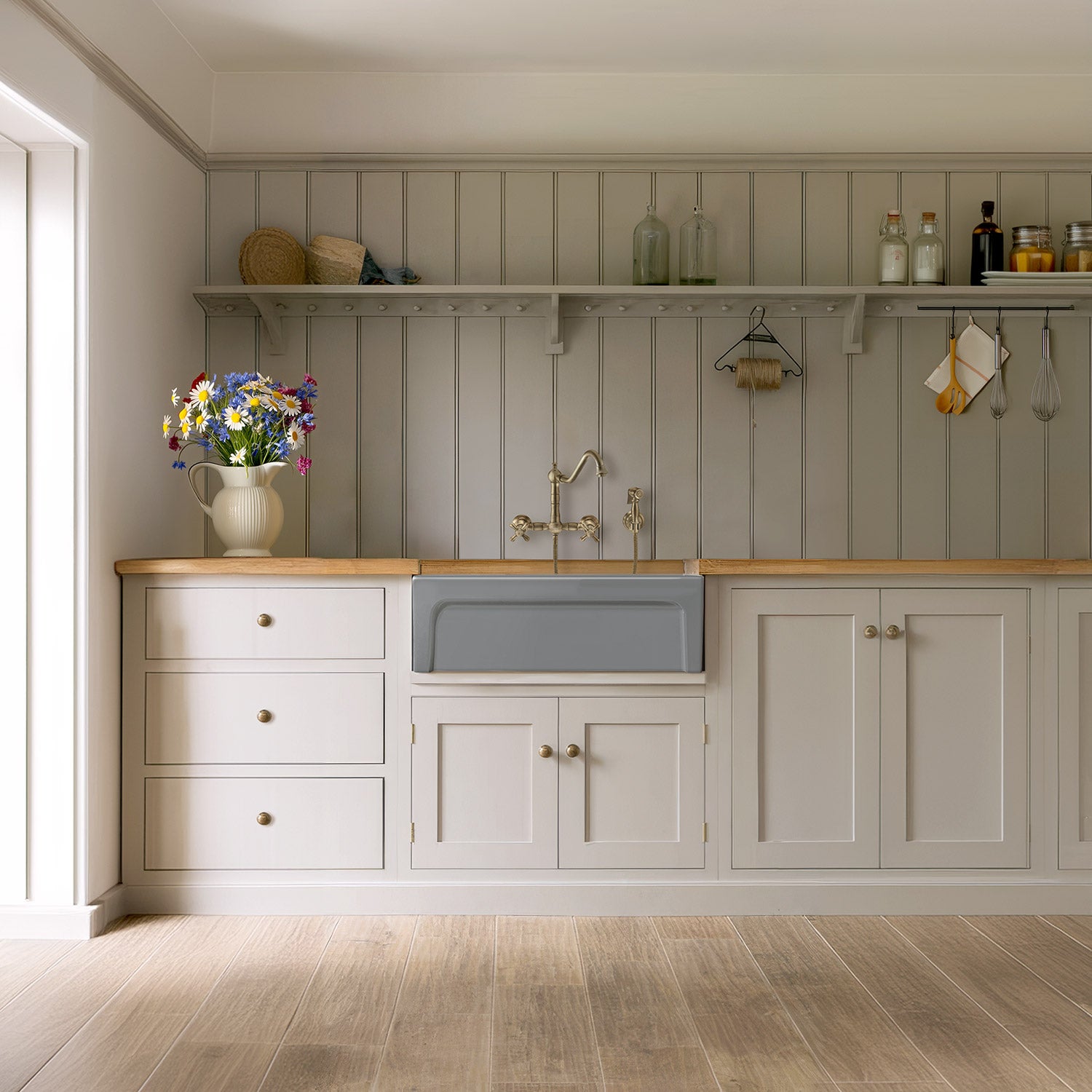 Two distinct styles: On one side, enjoy the timeless elegance of an elegant beveled front apron, adding a touch of refinement to your kitchen space.
