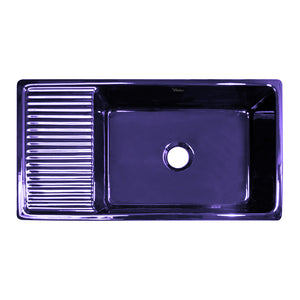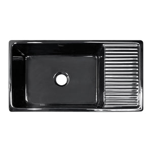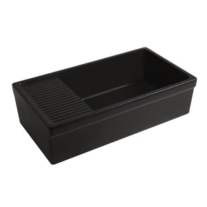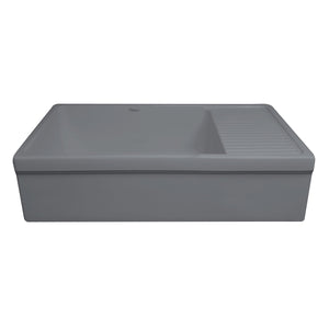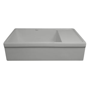 36" large reversible single bowl fireclay kitchen sink with integral drainboard and decorative 2-1/2" lip on both sides: