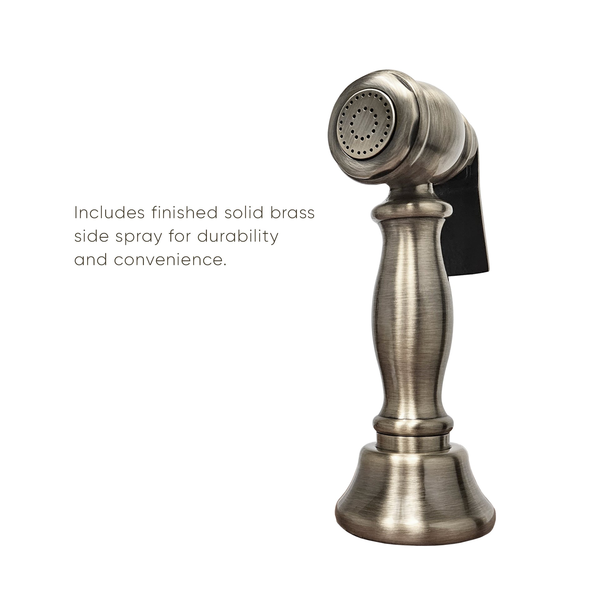 Bridge Faucet with Long Traditional Swivel Spout, Lever Handles and Solid Brass Side Spray